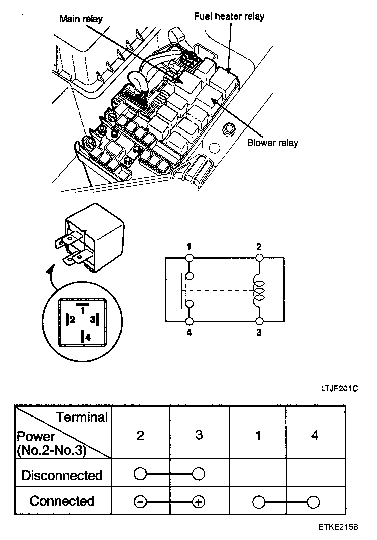 2. There should be continuity between the No.1 and No.4 terminals when power is disconnected.