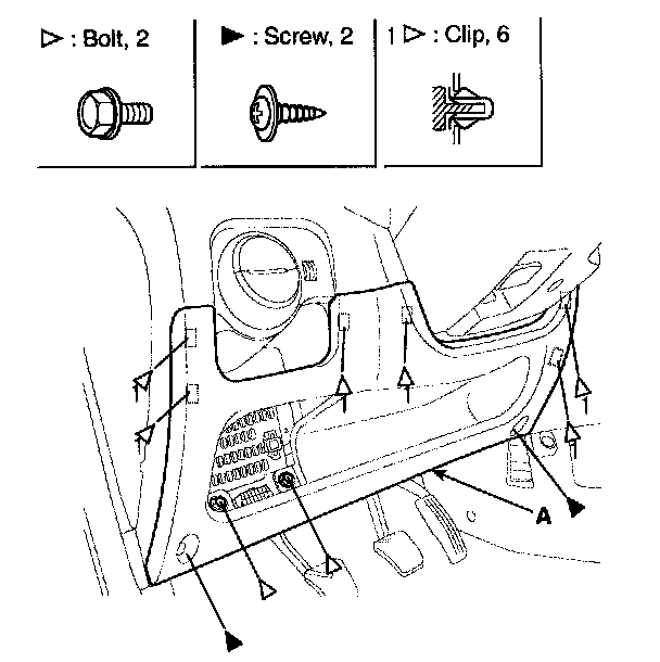 2. Remove the crash pad lower panel(A).