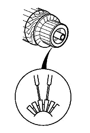 8. Check for continuity between the segments of the commutator. If an open circuit exists between any segments, replace the armature.