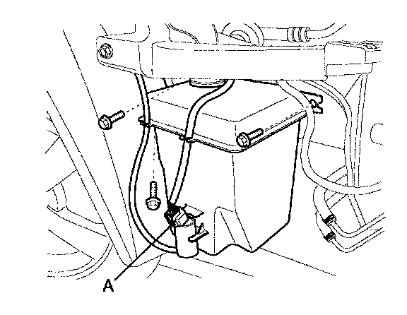 Remove the washer hose and the washer motor connector (A).