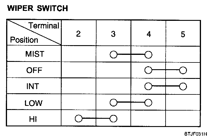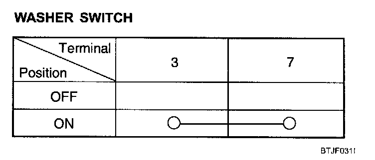 Check for continuity between the terminals while operating the wiper and washer switch. If it is not normal condition, replace wiper and wiper switch.
