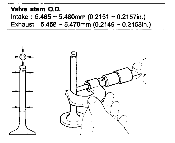 2) Using a micrometer, measure the diameter of the valve stem.