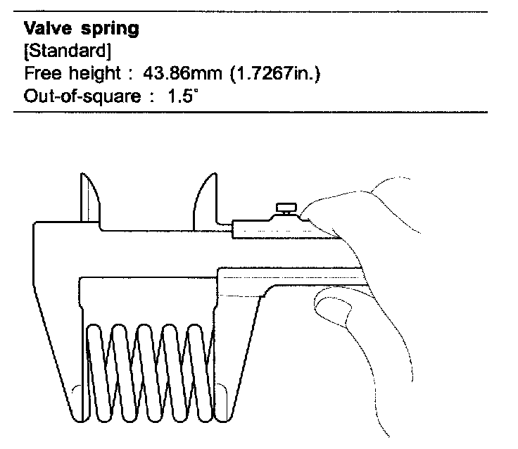 2) Using vernier calipers, measure the free length of the valve spring.