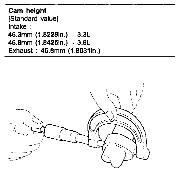 Using a micrometer, measure the cam lobe height.
