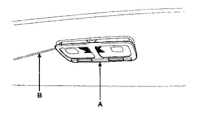 2. Remove the room lamp assembly (A) by using the scraper (B) and then disconnect the 2P connector.