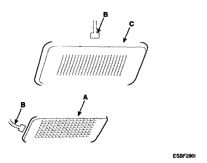 1. Using a screwdriver, and remove the vanity lamp (A) and hands free mic (C).