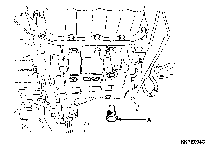 3. Remove the drain plug(A) from the bottom of the transmission case to drain the fluid.