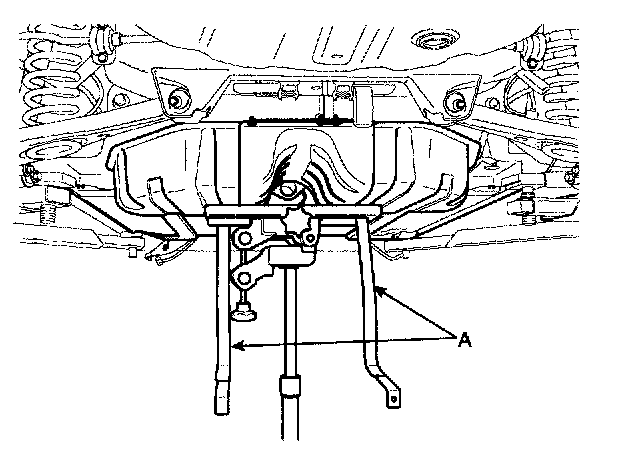 5. Support the fuel tank with a jack and remove the Fuel Tank band (A).