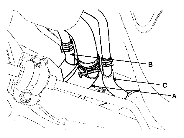 6. Disconnect the Fuel Feed Hose (A), Leveling Hose (B) and Canister Ventilation Hose (C).