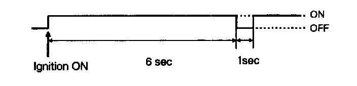 The lamp shall turn on for 6 seconds during the initialization phase and be turned off afterward. However, in order to indicate the driver, the warning lamp shall turn on for 6 seconds and off for one second then on continuously after the operating voltage is applied if any active fault exists.