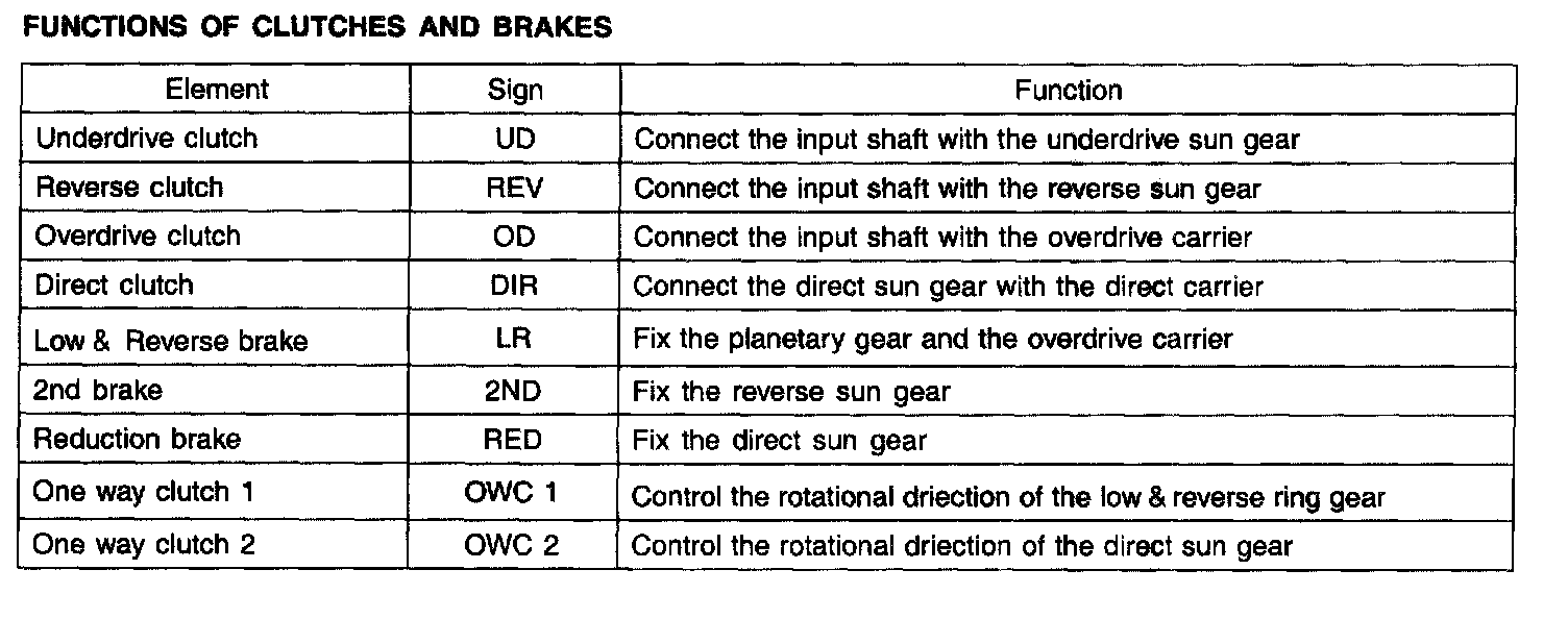 CLUTCHES AND BRAKES FOR EACH RANGE: