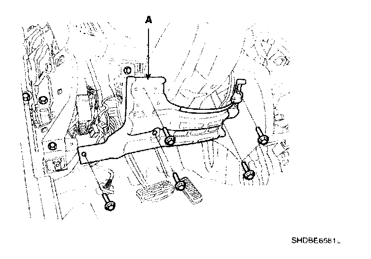 3. Remove the driver crash pad reinforcing panel (A) after loosening 5 bolts.