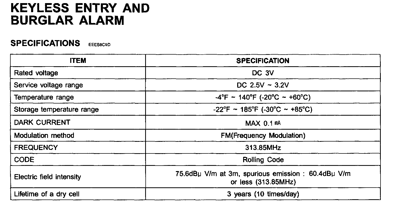 Keyless Entry And Burglar Alarm - Specifications: