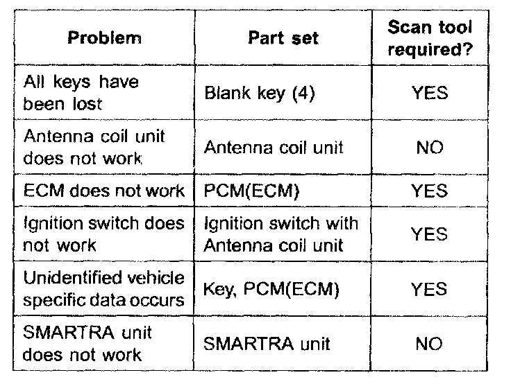 IMMOBILIZER CONTROL SYSTEMPROBLEMS AND REPLACEMENT PARTS: