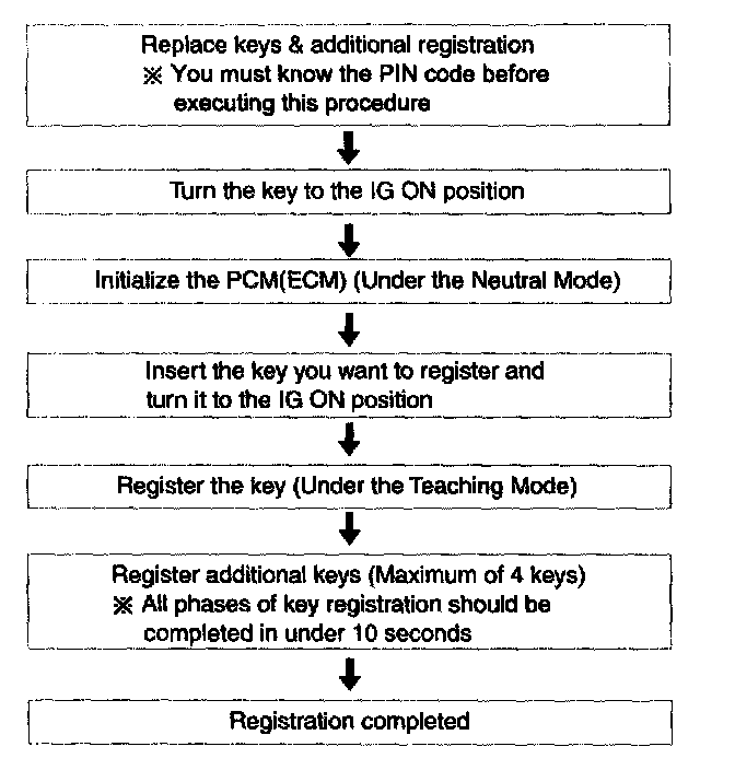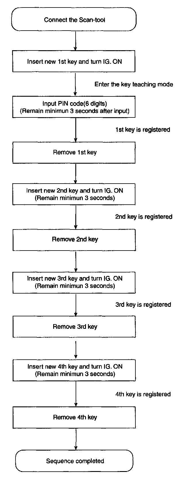 If the PCM(ECM) status and the key status do not match for teaching of keys, the tester procedure will be stopped and a specific fault code will be stored at PCM(ECM).