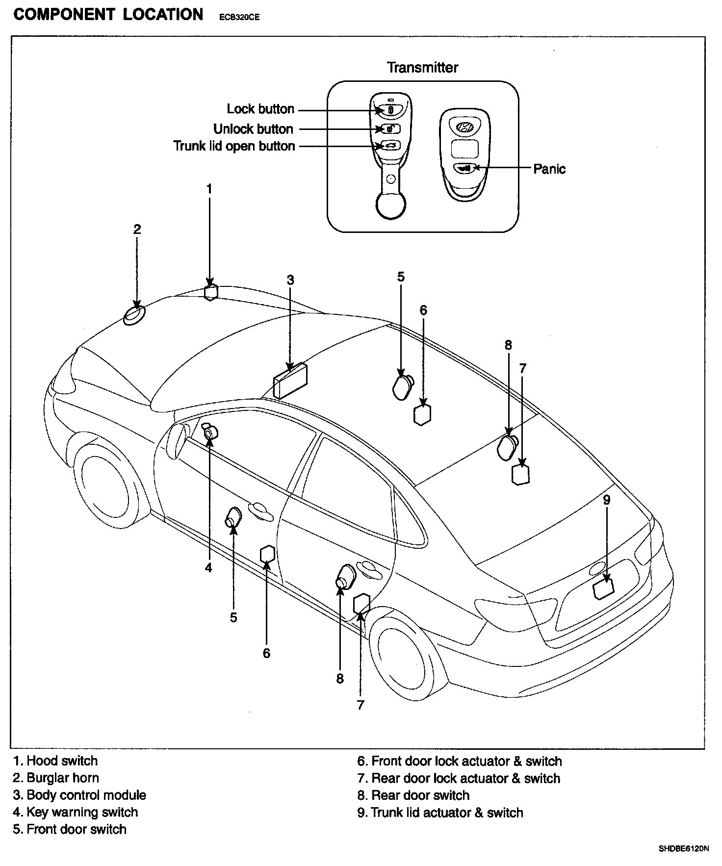Keyless Entry And Burglar Alarm - Component Location: