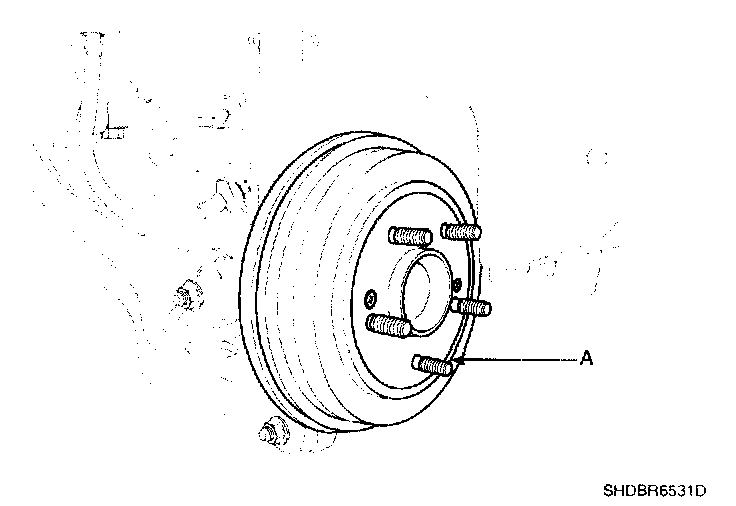 3. Remove the rear brake drum (A).
