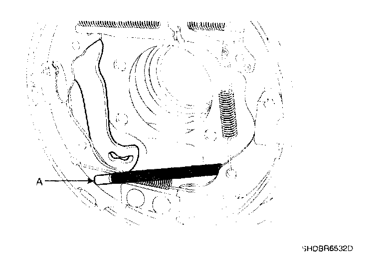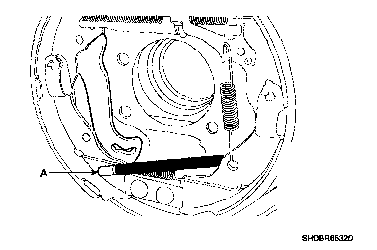 5. Hook the shoe adjuster lever (A), then install it to the brake shoe.