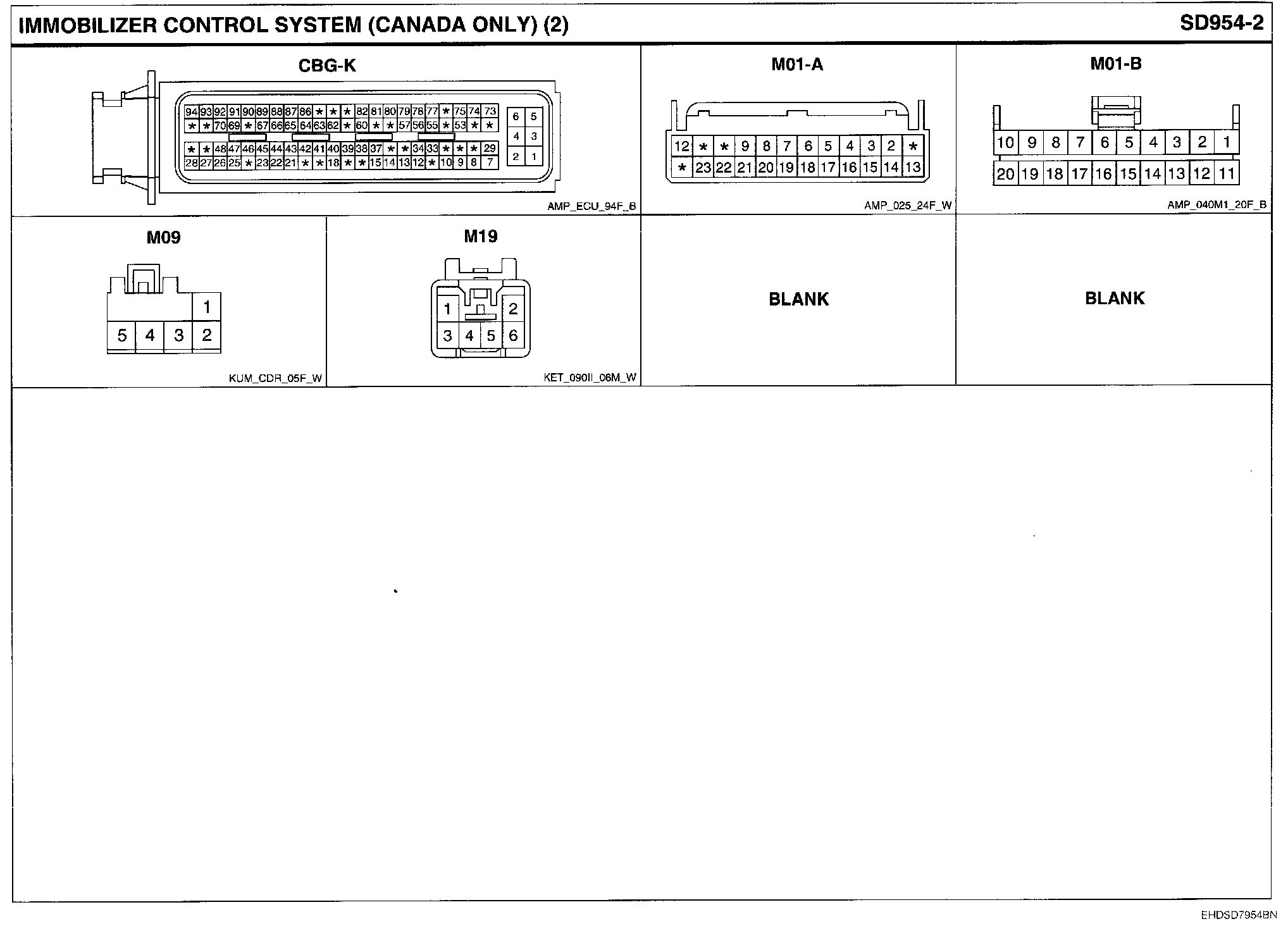 Immobilizer Control System (Canada Only) Connector Pin Outs: