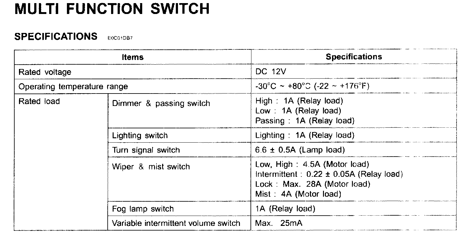 Multi Function Switch - Specifications: