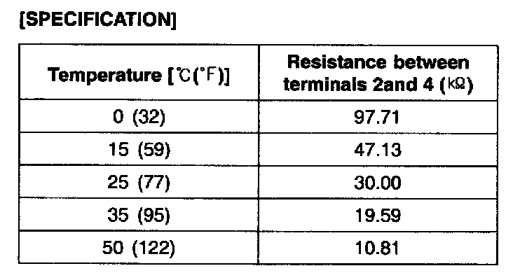 NOTE: The in car sensor is negative type thermistor where the resistance will increase with lower temperature, and become lower with higher temperature.