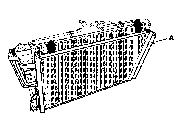 4. Remove the condenser (A) by lifting it up. Be careful not to damage the radiator and condenser fins when removing the condenser.
