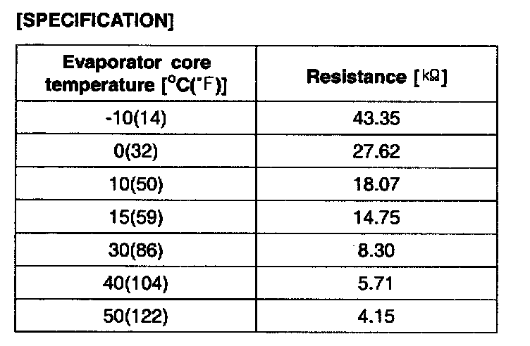 4. If the measured resistance is not specification, substitute with a known-good evaporator temperature sensor and check for proper operation.