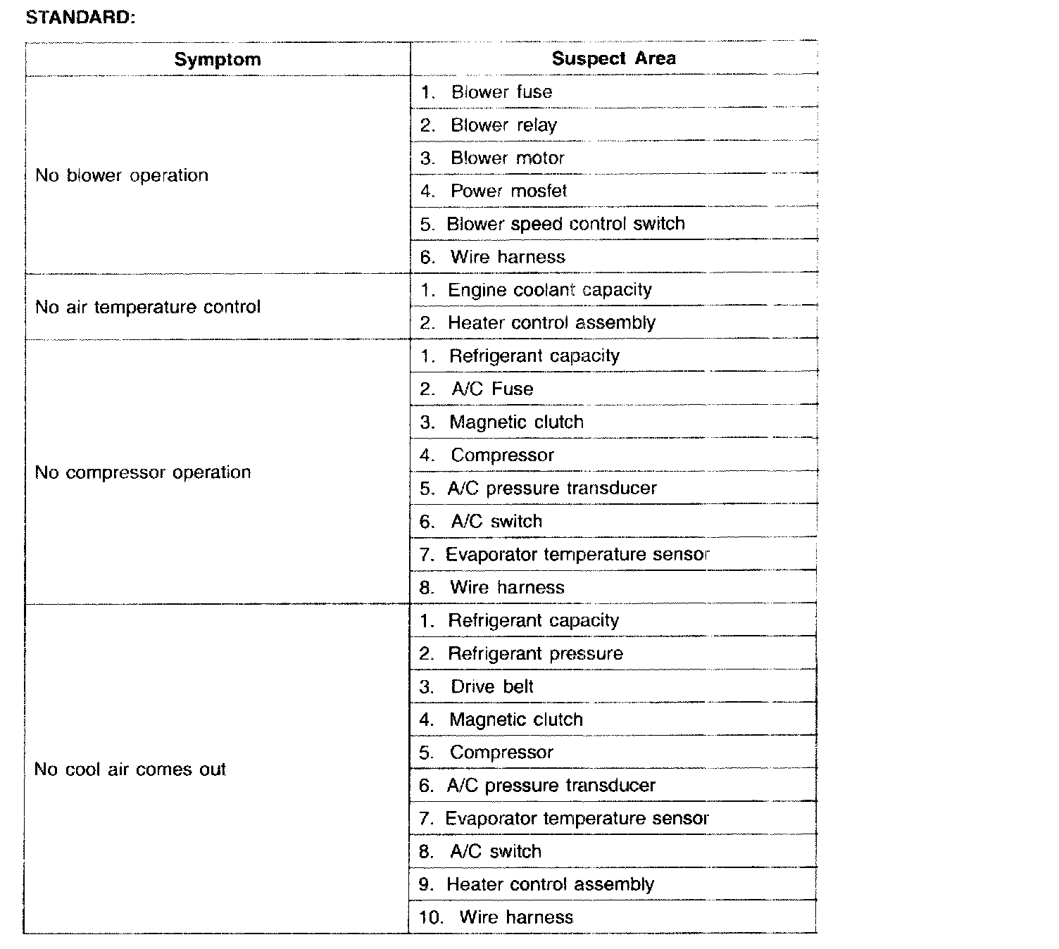TROUBLESHOOTINGPROBLEM SYMPTOMS TABLE