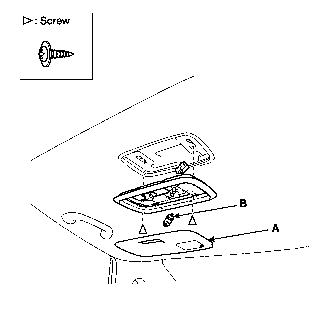 2. Detach the lamp lens (A) from the room lamp with a flat-tip screwdriver then remove the bulb (B).