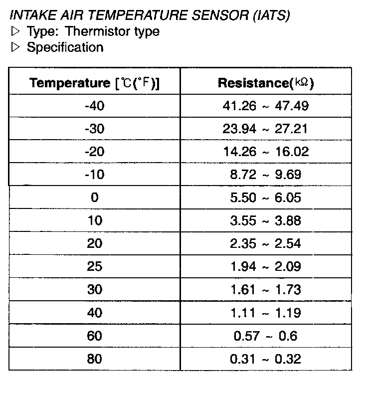 Air Temperature Sensor ( Ambient / Intake ): Specifications