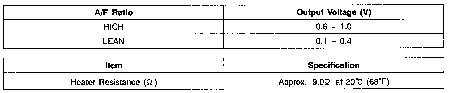 Heated Oxygen Sensor (HO2S) consists of zirconium and alumina and is installed on upstream and downstream of the Manifold Catalyst Converter (MCC). After it compares oxygen consistency of the atmosphere with the exhaust gas, it transfers the oxygen consistency of the exhaust gas to the ECM. In order that this sensor normally operates, the temperature of the sensor tip is higher than 370 °C (698 °F). So it has a heater which is controlled by the ECM duty signal. When the exhaust gas temperature is lower than the specified value, the heater warms the sensor tip.