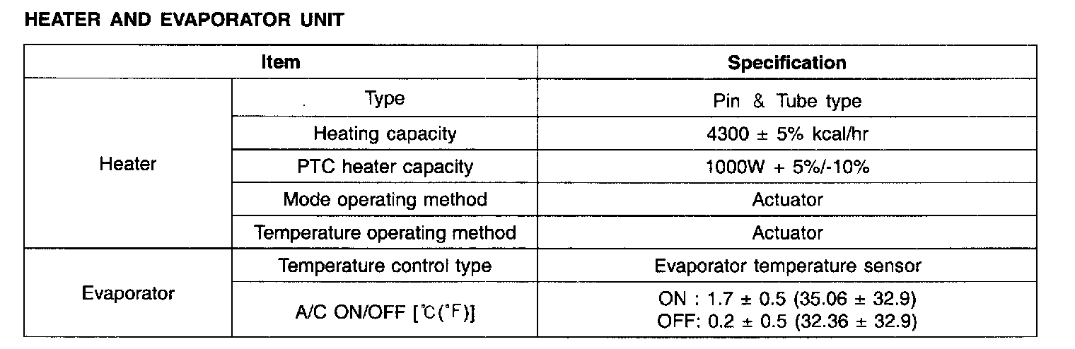 Heater And Evaporator Unit - Specifications: