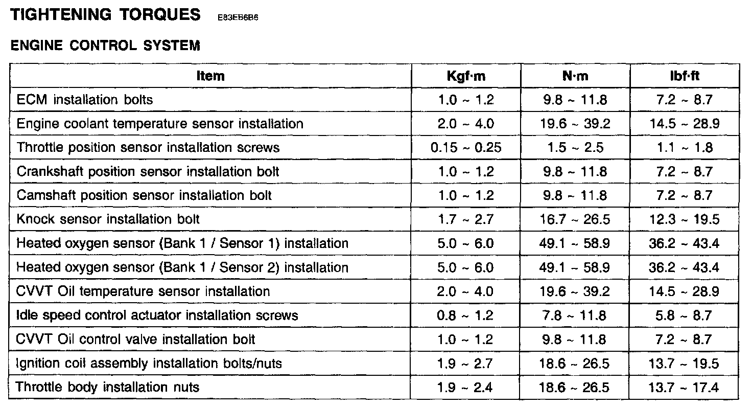 Tightening Torques - Engine Control System: