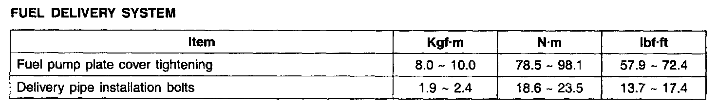 Tightening Torques - Fuel Delivery System: