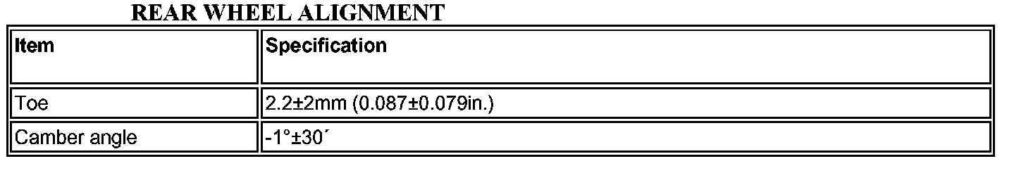Rear Wheel Alignment Specifications
