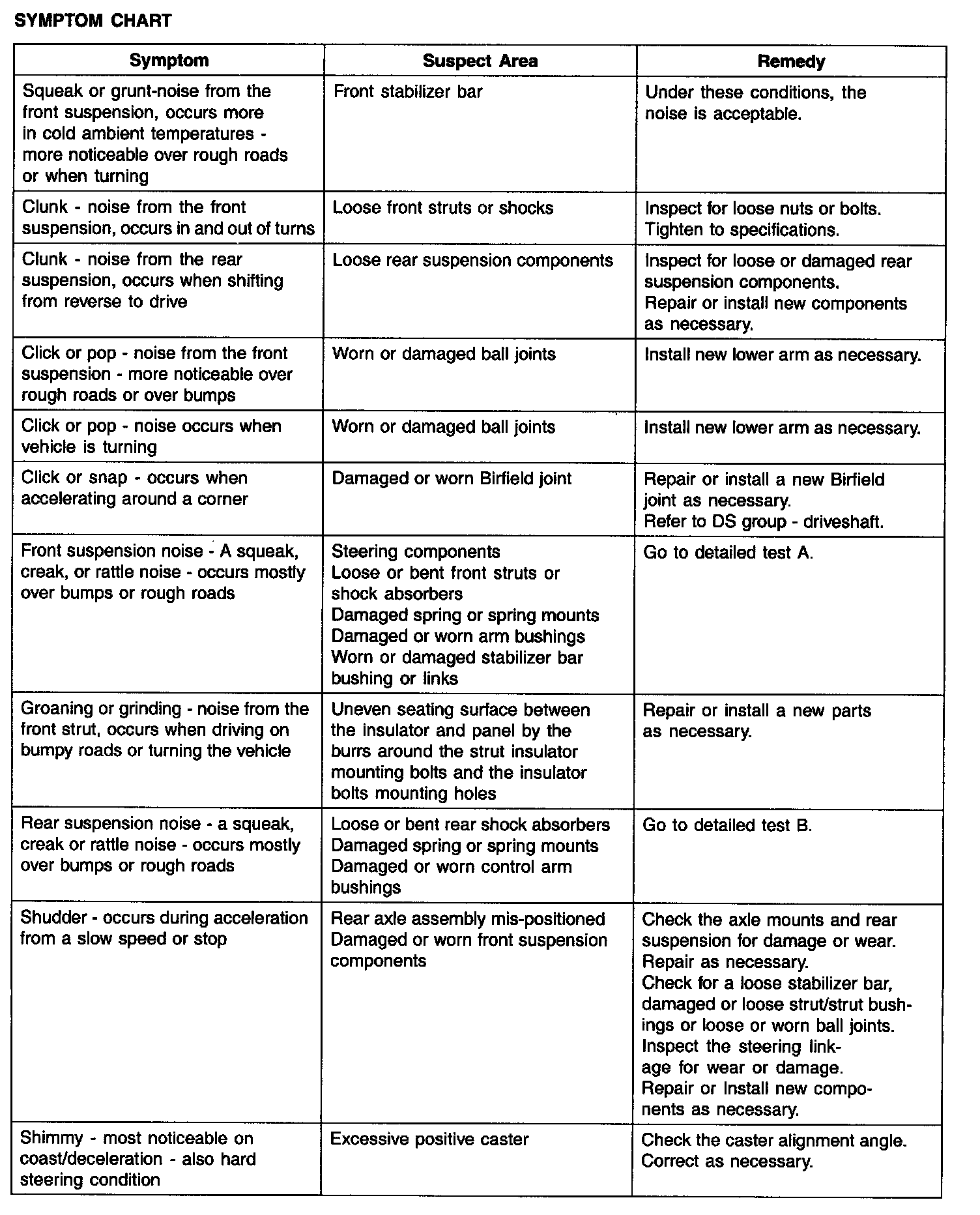 SYMPTOM CHART (part 1):