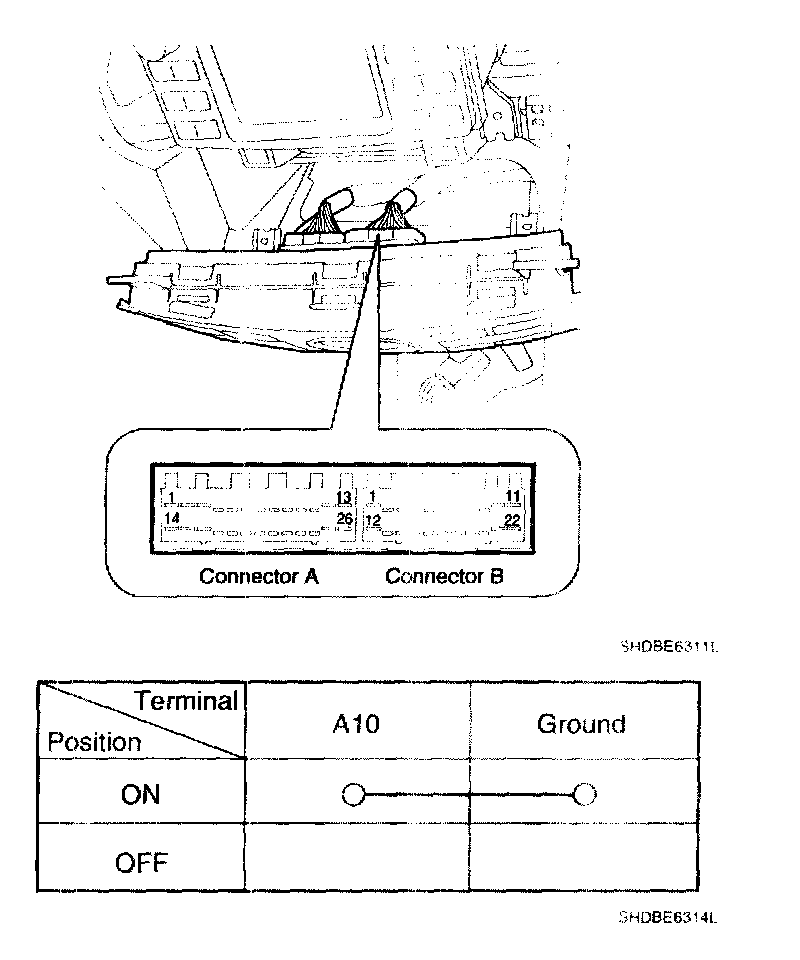 Using an Ohmmeter, inspect the continuity between the terminals after removing controller.