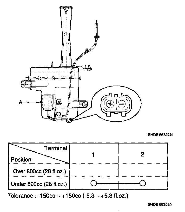 2. Drain the washer fluid less than 800 cc (28 fl.oz.).