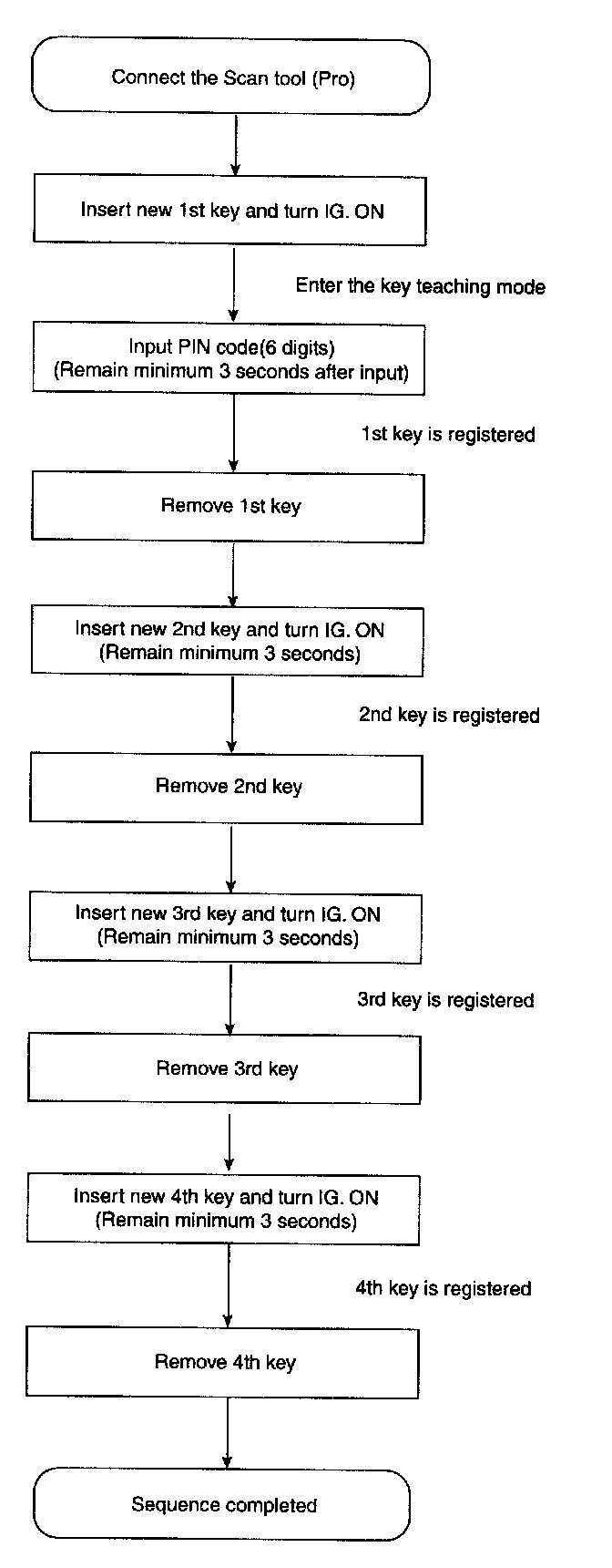 If the PCM (ECM) status and the key status do not match for teaching of keys, the tester procedure will be stopped and a specific fault code will be stored at PCM (ECM).