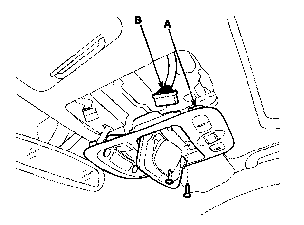 2. Remove the lens and open the sunglass case cover from the overhead console then remove the 2 screws holding the overhead console. And disconnect the connector then remove the overhead console lamp assembly from the headliner.