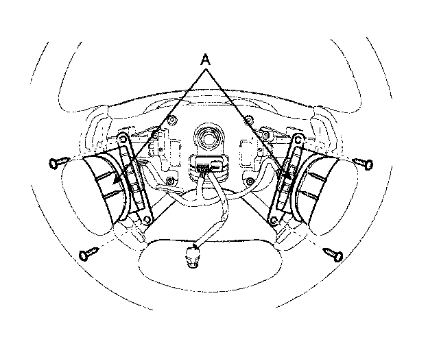 3. Remove the audio remote control switch (A) after removing the steering wheel remote control switch connector and 2 screws.
