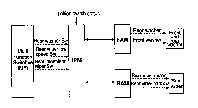 - In the OFF and ACC states, the rear wiper stops its movement at current position. The rear wiper will move to the park position at the next IGN ON. In these states, the rear washer is not activated.
