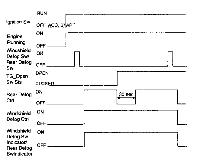 - If the user turns on rear defog function while this pause is going on, Rear defog ctrl is set to ON only at the end of the pause.
