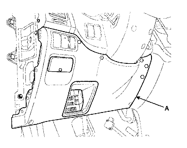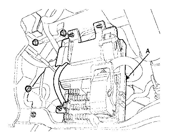 3. Remove the keyless antenna cable and IPM (Instrument Panel Module) (A) after loosening 3 nuts and disconnecting 5 connectors.
