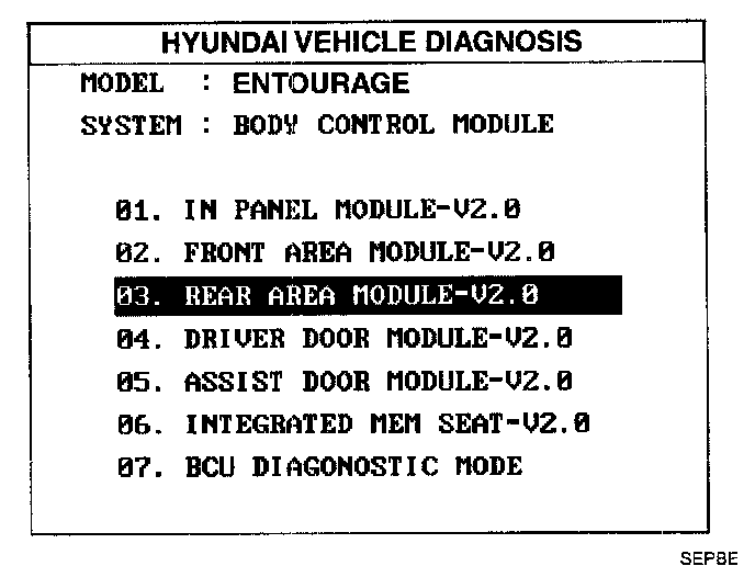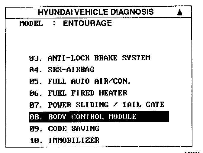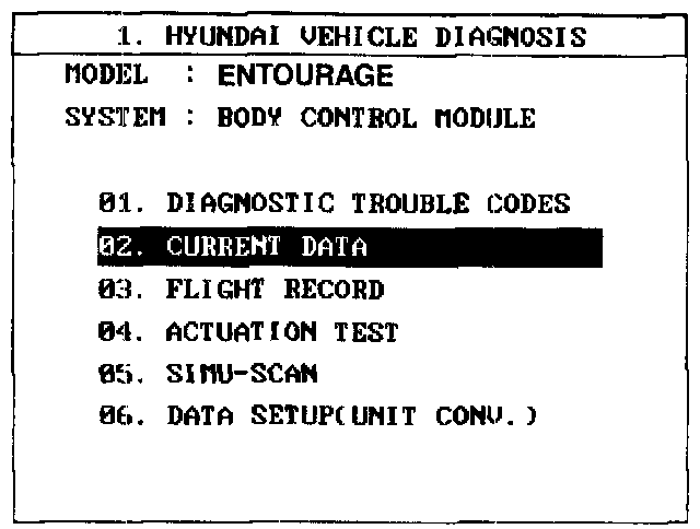 2. To diagnose the BCM function, select the menu of model and body control module.