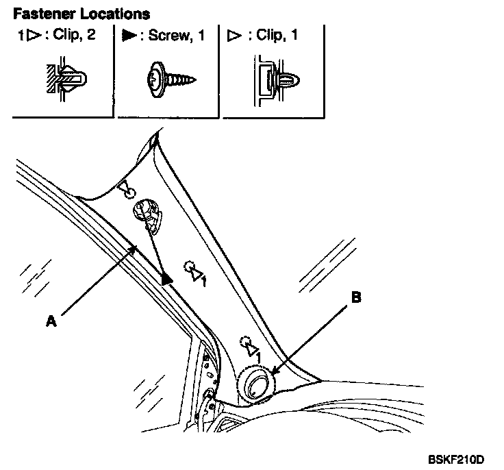 1. Remove the front pillar trim (A).