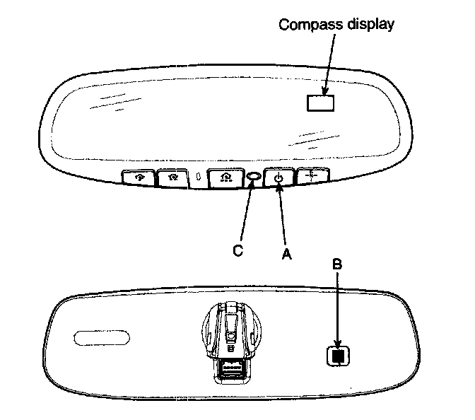 3. The ECM is darkened to the level as determined by the rearward looking sensor (C). When the glaring is no longer detected, the mirror stops functioning.