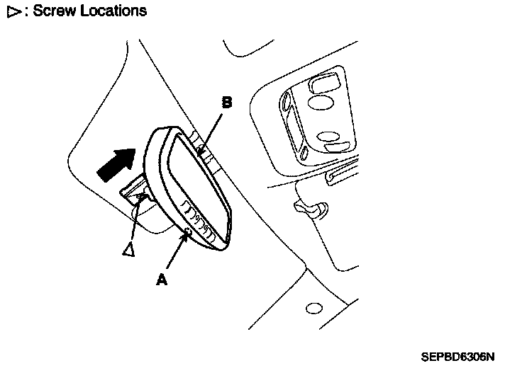 Push the ECM mirror base up to remove the ECM mirror assembly (B).