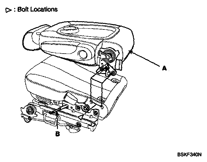 Remove the recliner lever (B) and cover (A).