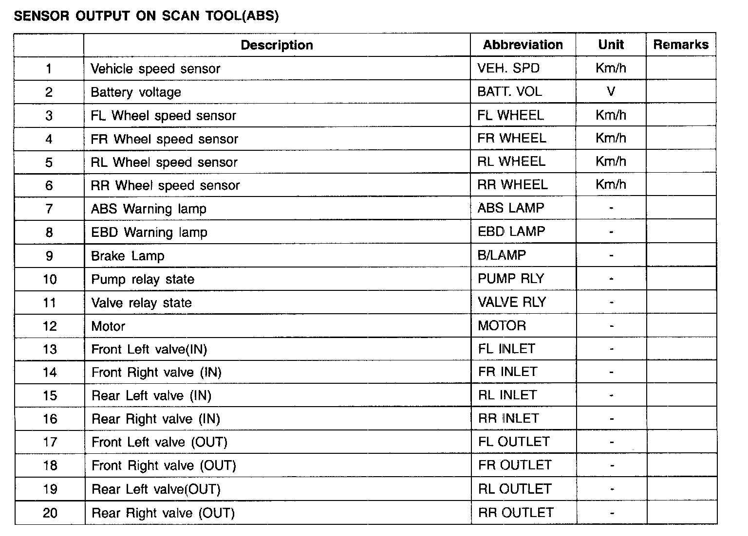 SENSOR OUTPUT ON SCAN TOOL(ABS):